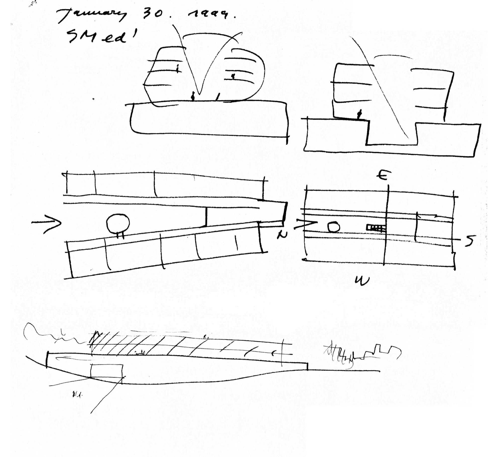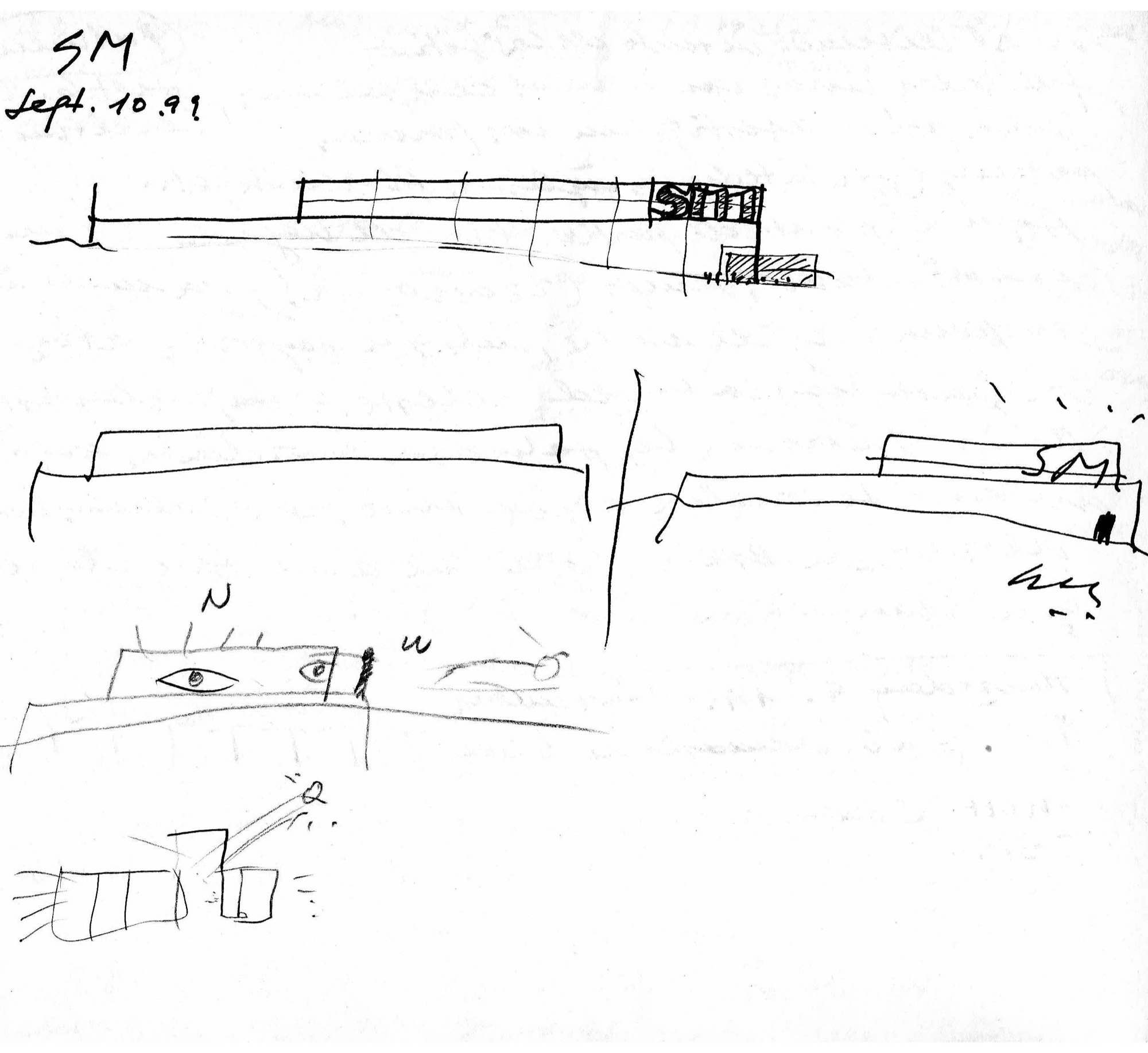 As a laying steel giant. Like a train, like a boat. A building with a metal skin on the edge of the highway. The headquarters for the SM Group responds well to its site, using state of the art construction technology and demonstrating its ability to age well.