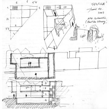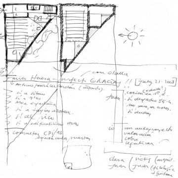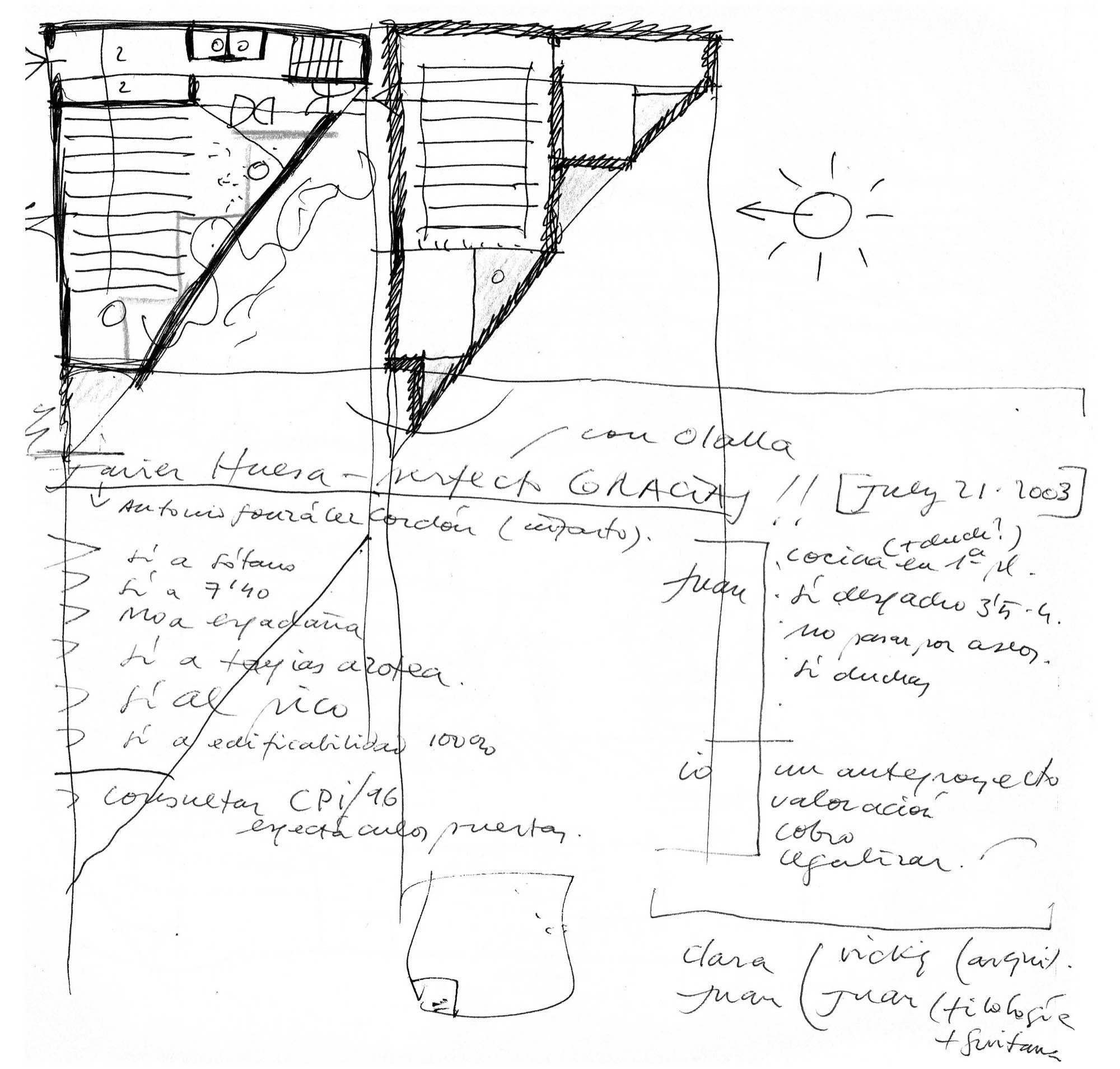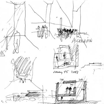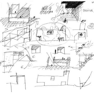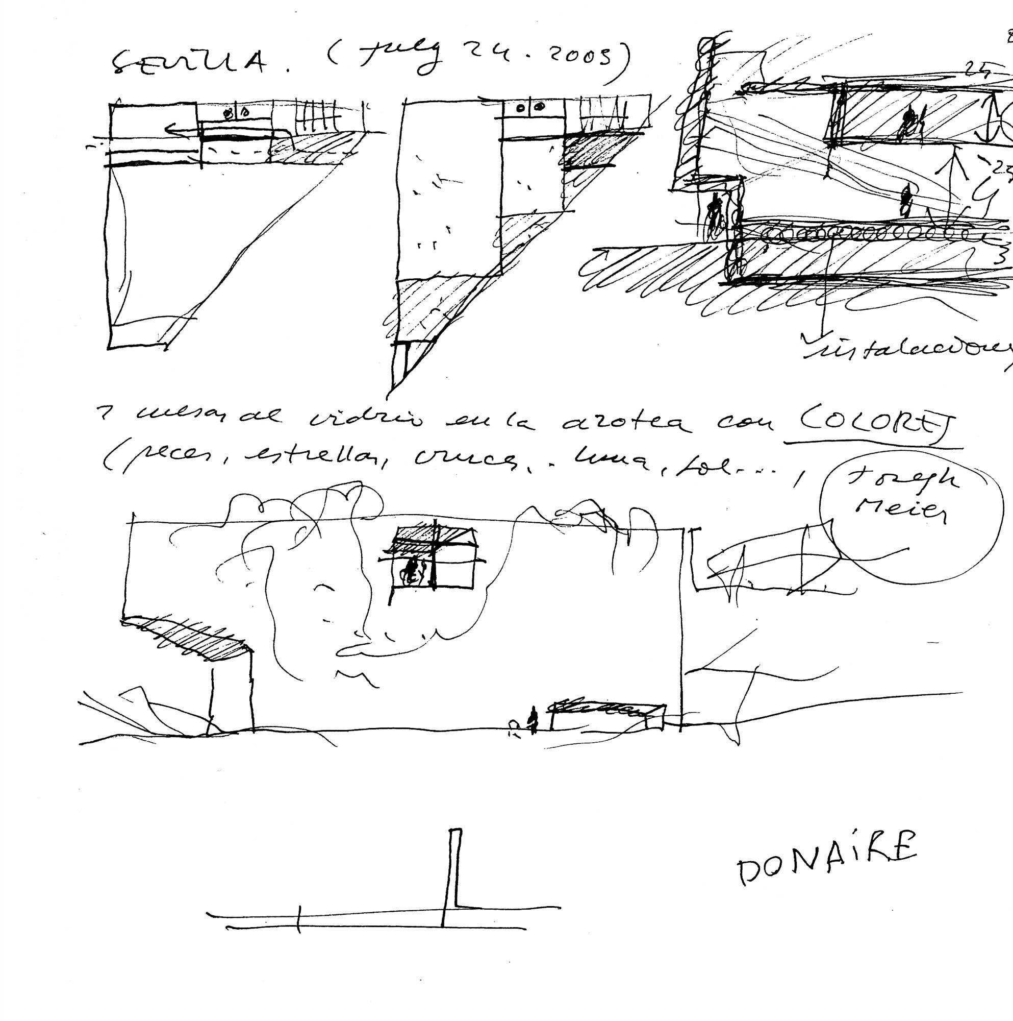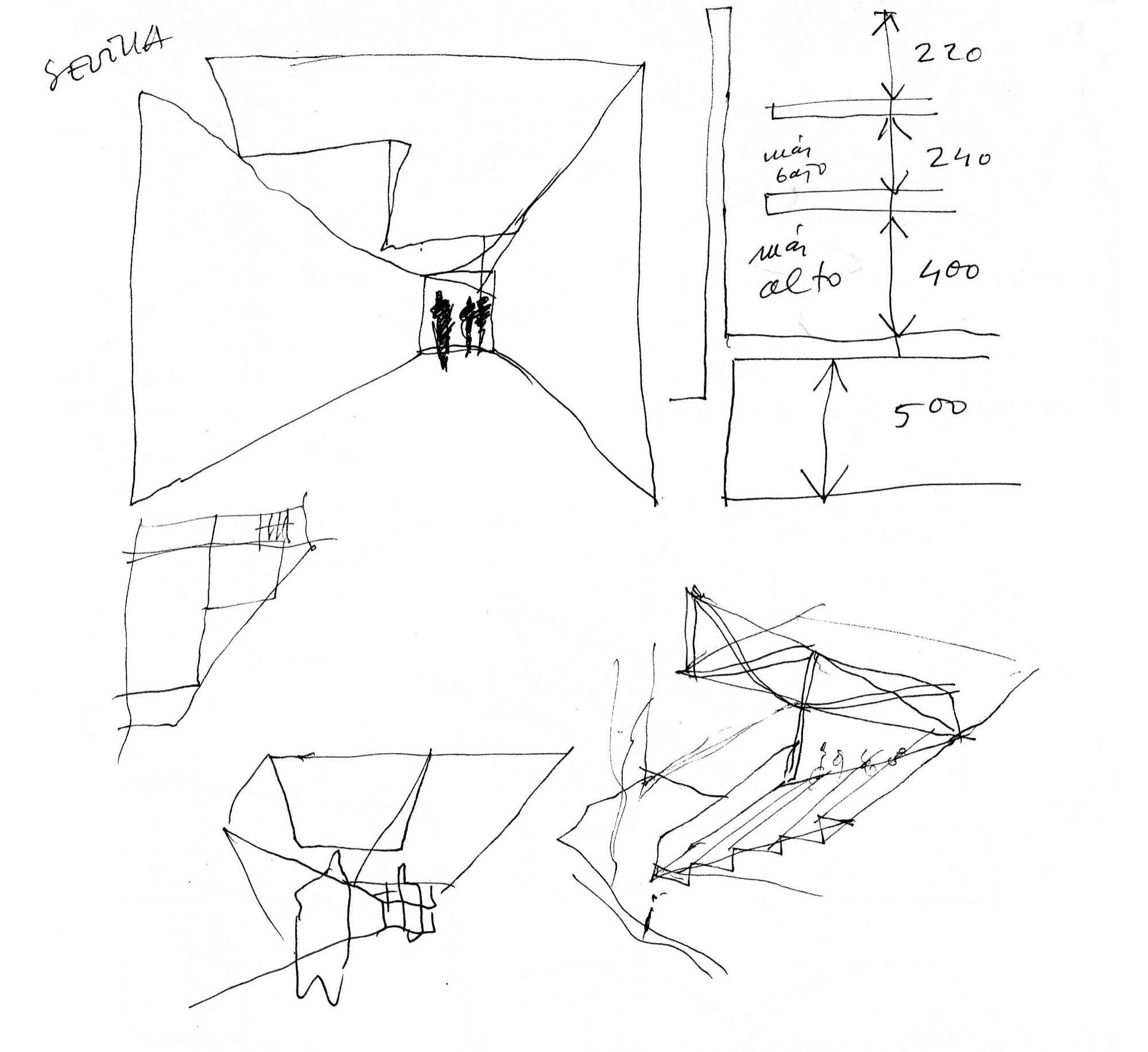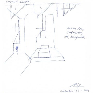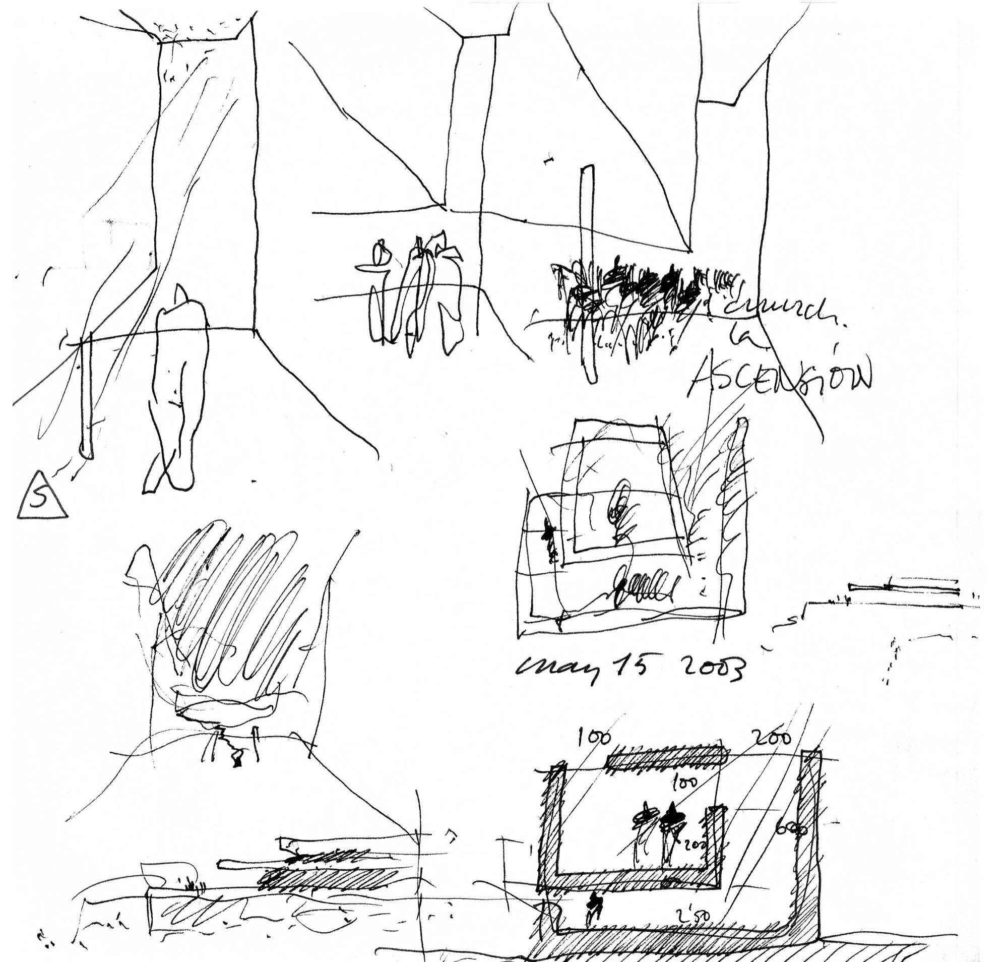 Hacer una iglesia en el barrio de la Macarena de Sevilla, una ciudad llena de luz. El solar es un pequeño triángulo con una sola medianera en el que levantamos el sólido capaz. La planta triangular hace que aparezca una proa que emergiendo del volumen sencillo y blanco, expresa de alguna manera el carácter singular del edificio.
