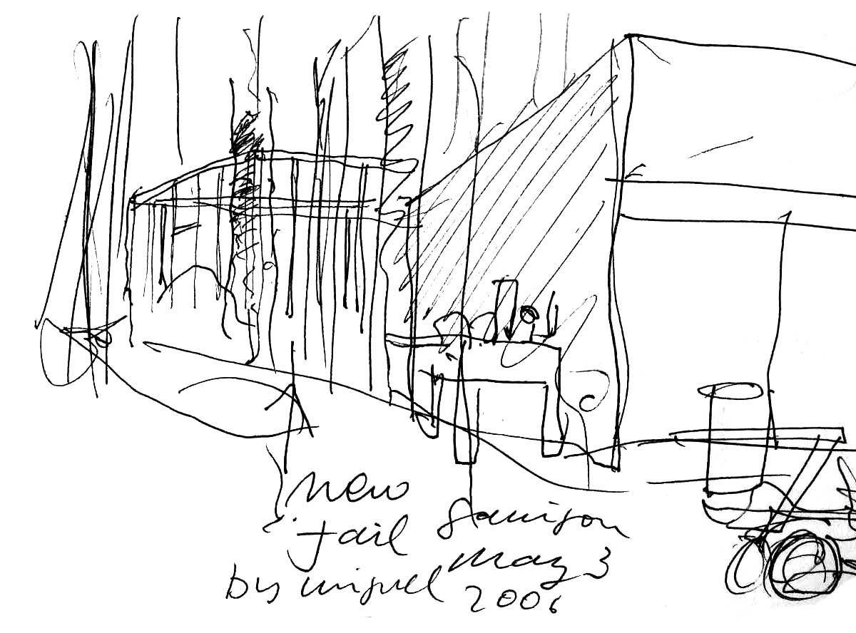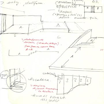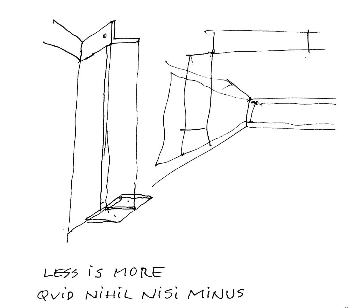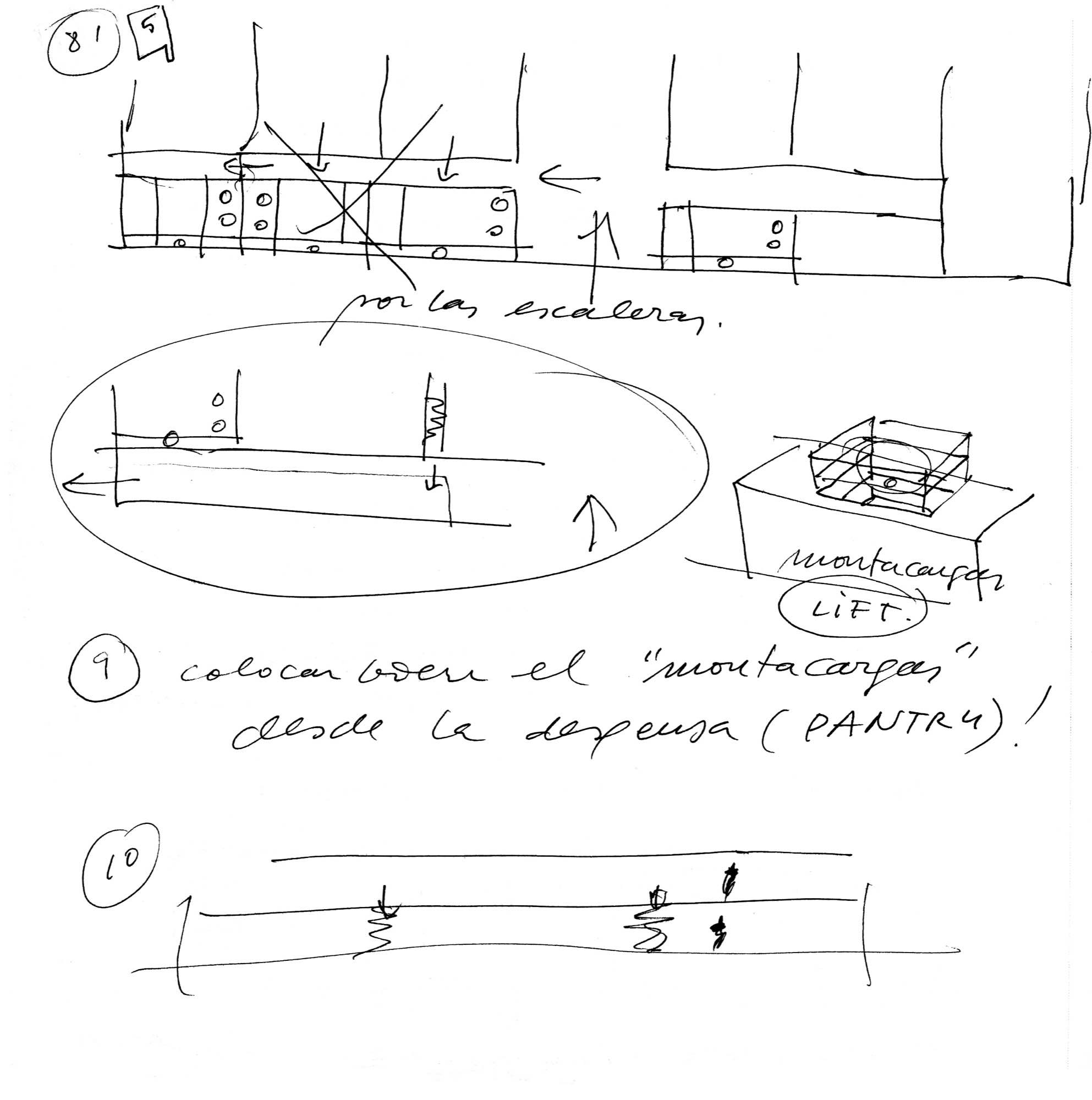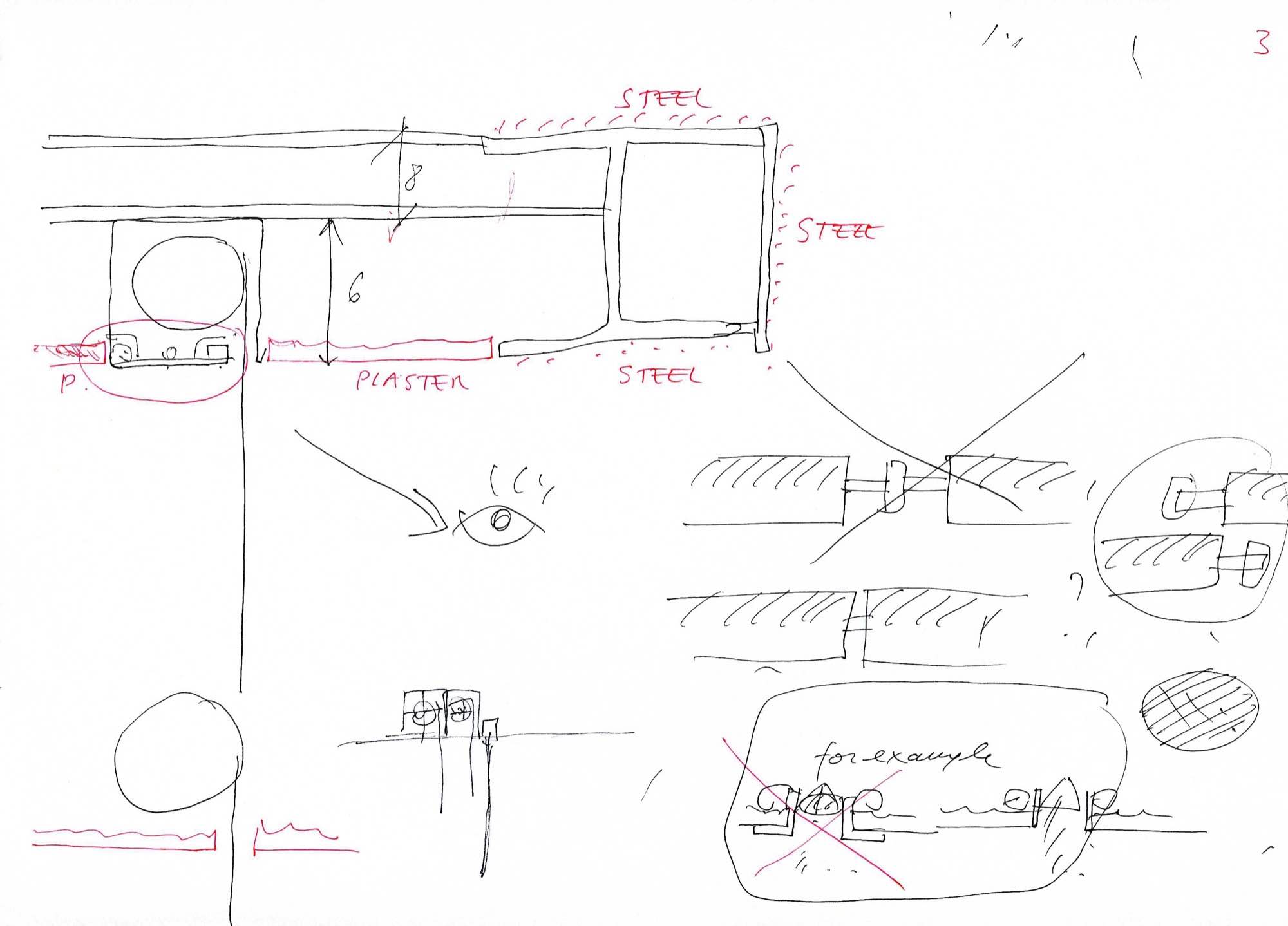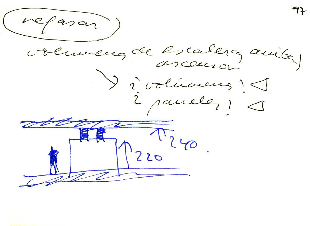 En un lugar de profunda calma donde tras un día de lluvia y niebla, una intensa luz se refleja en la quietud del espejo de las profundas aguas del majestuoso río Hudson. En este impresionante lugar, decidimos establecer un plano, una plataforma, que subrayando el paisaje que aparece frente a nosotros, intentara realzar el paisaje. Construimos una gran caja de 122 pies de largo por 54 pies de ancho por 12 pies de alto. Con recias paredes de hormigón que acentúan su relación con la tierra. La cubierta de esta caja es plana y de piedra, travertino, para establecernos sobre ella.