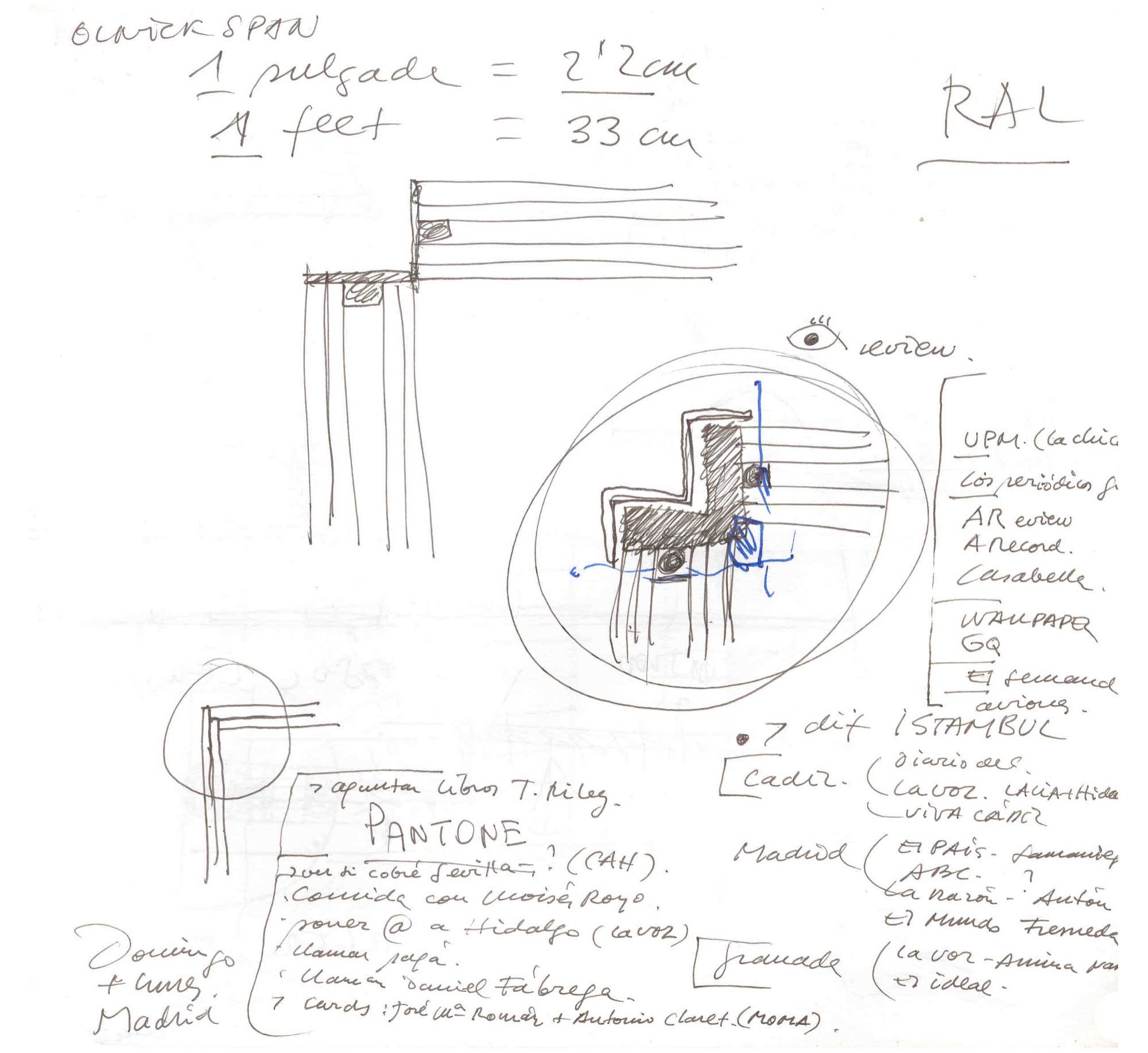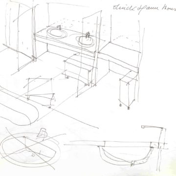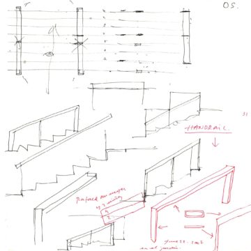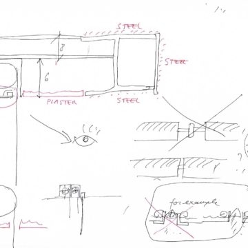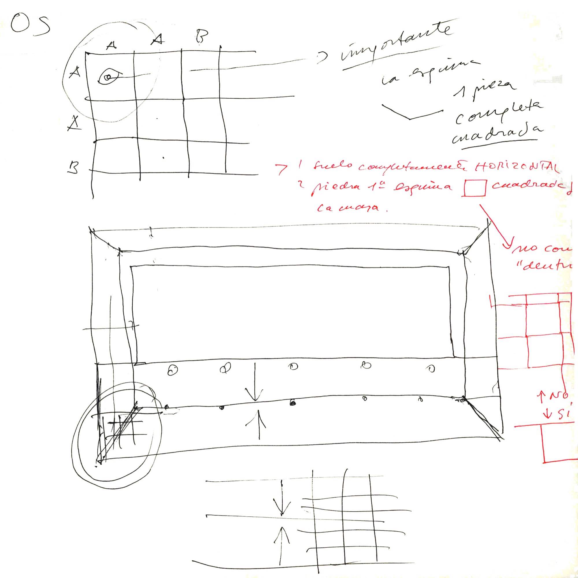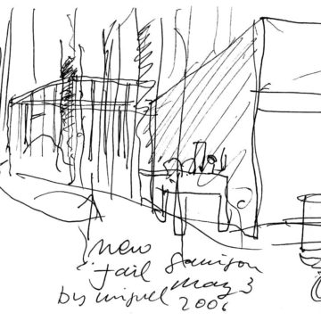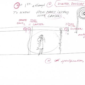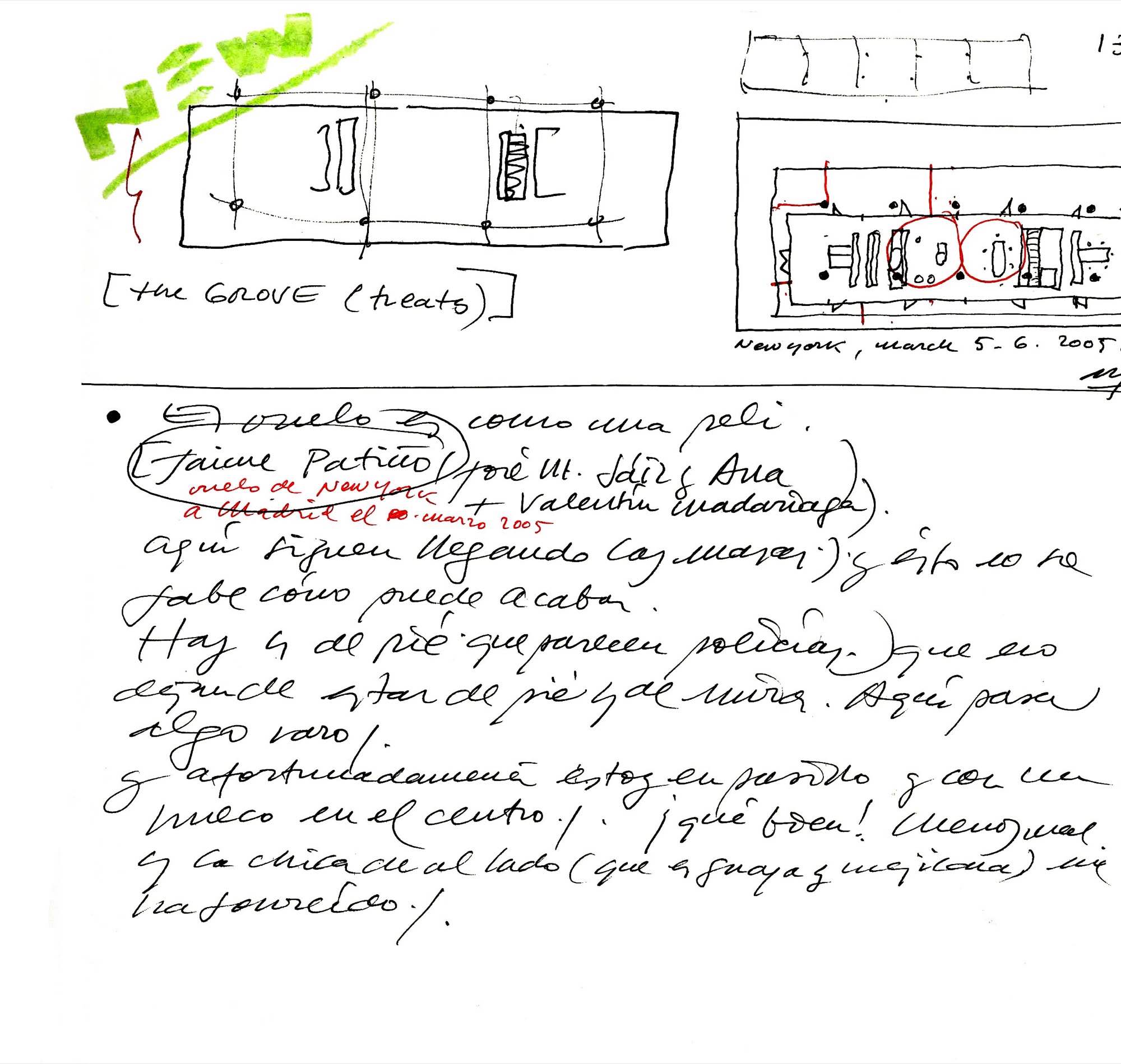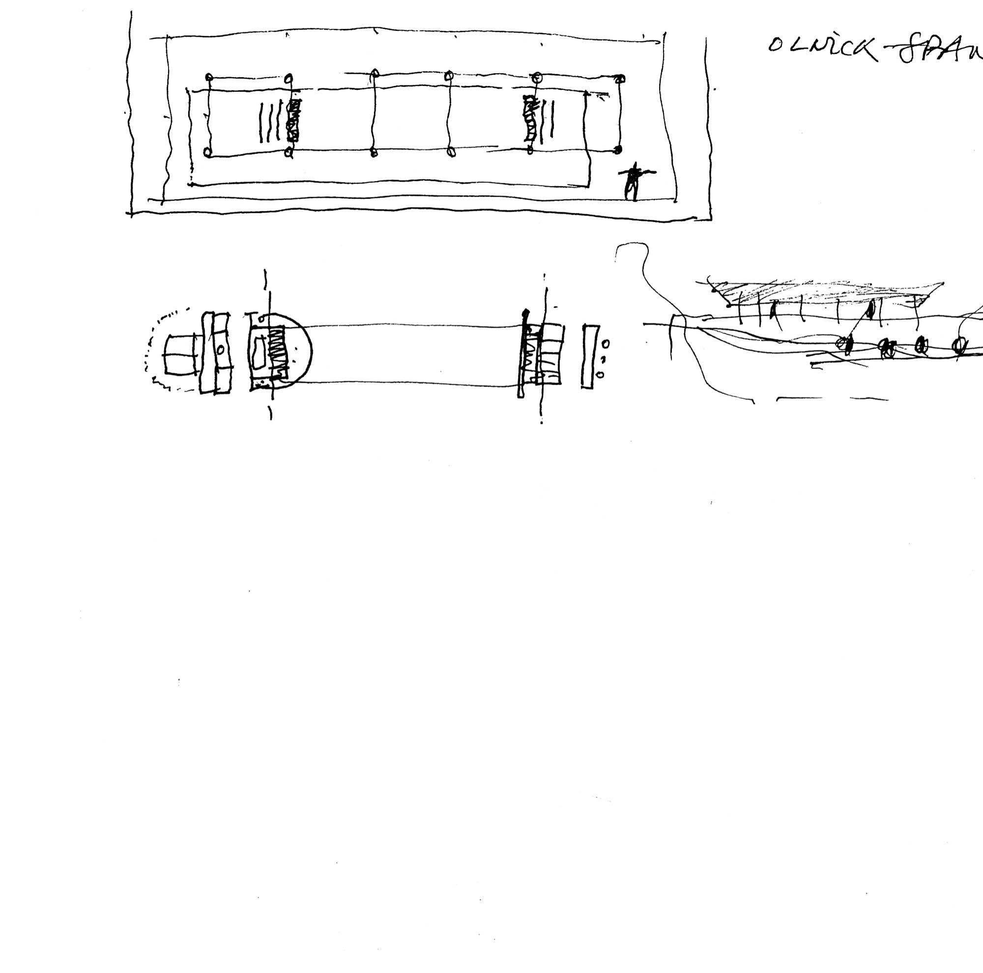 En un lugar de profunda calma donde tras un día de lluvia y niebla, una intensa luz se refleja en la quietud del espejo de las profundas aguas del majestuoso río Hudson. En este impresionante lugar, decidimos establecer un plano, una plataforma, que subrayando el paisaje que aparece frente a nosotros, intentara realzar el paisaje. Construimos una gran caja de 122 pies de largo por 54 pies de ancho por 12 pies de alto. Con recias paredes de hormigón que acentúan su relación con la tierra. La cubierta de esta caja es plana y de piedra, travertino, para establecernos sobre ella.