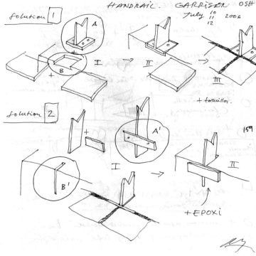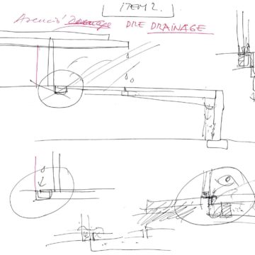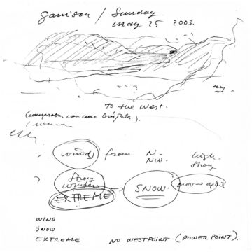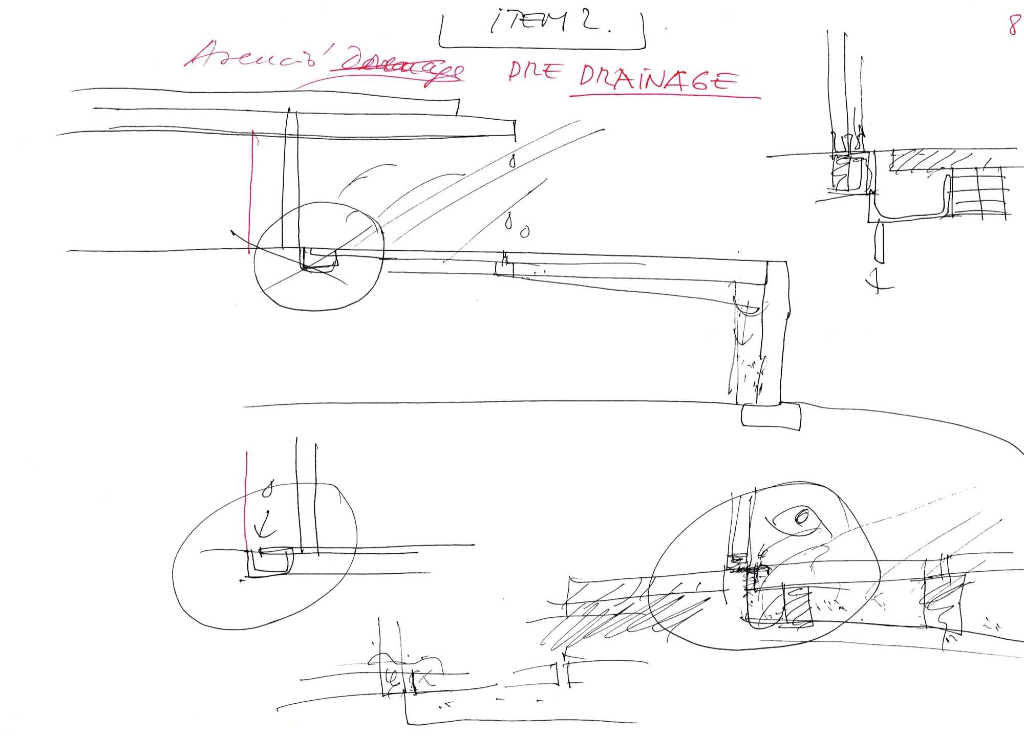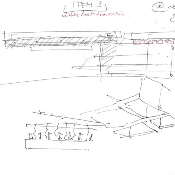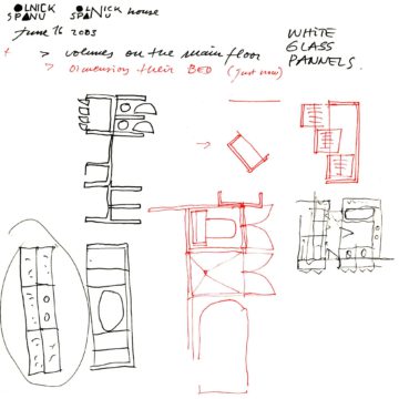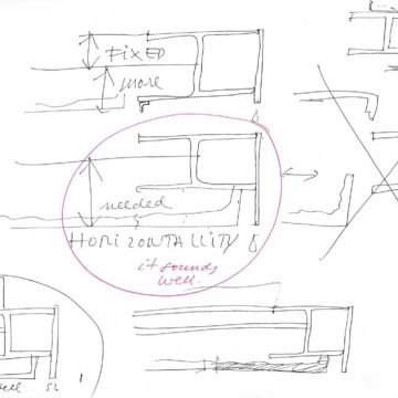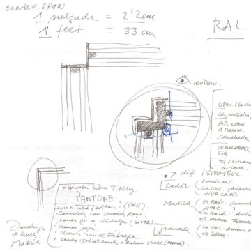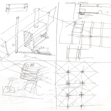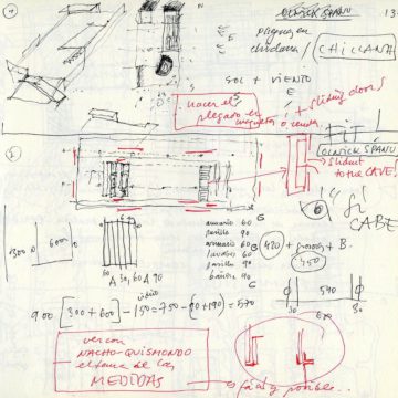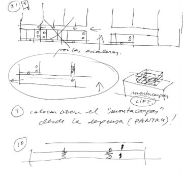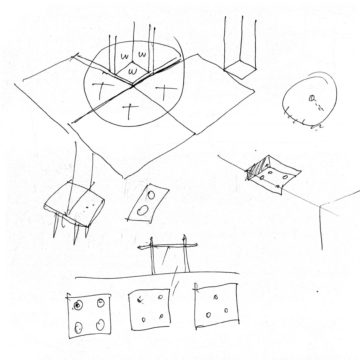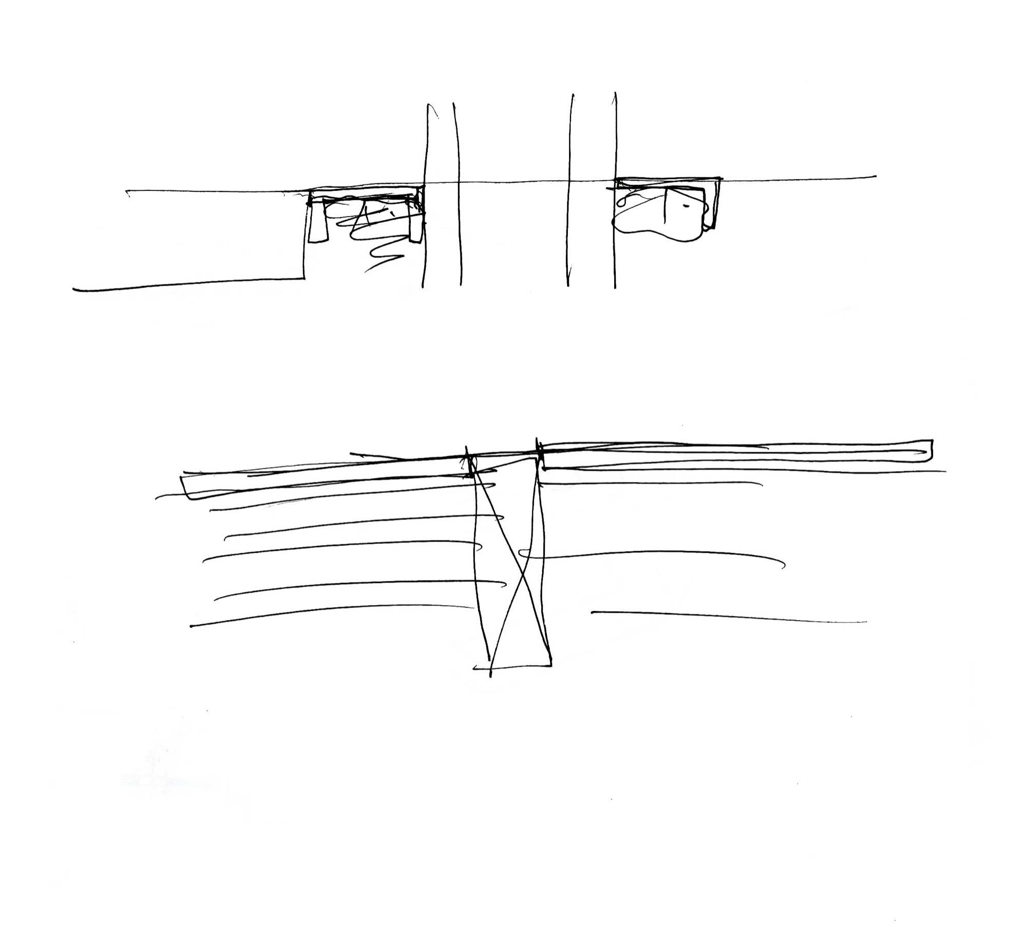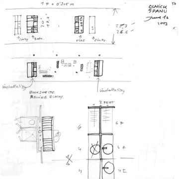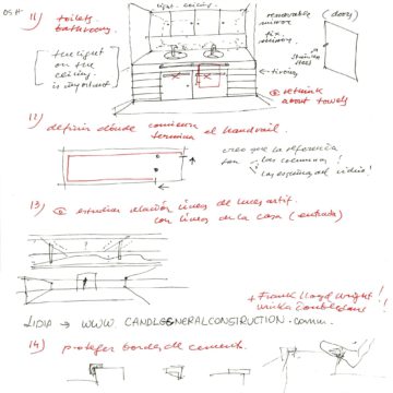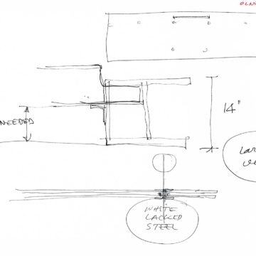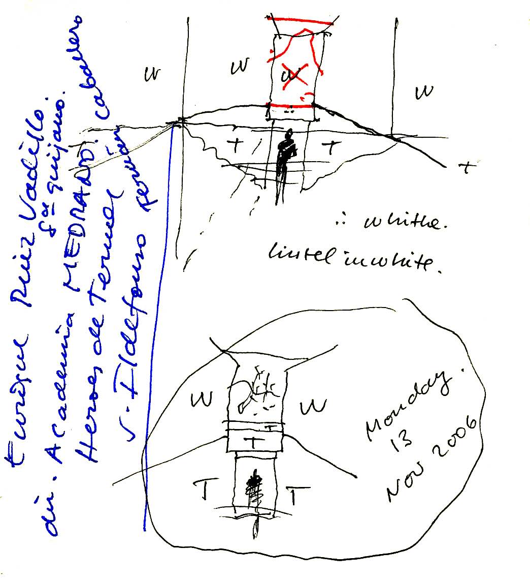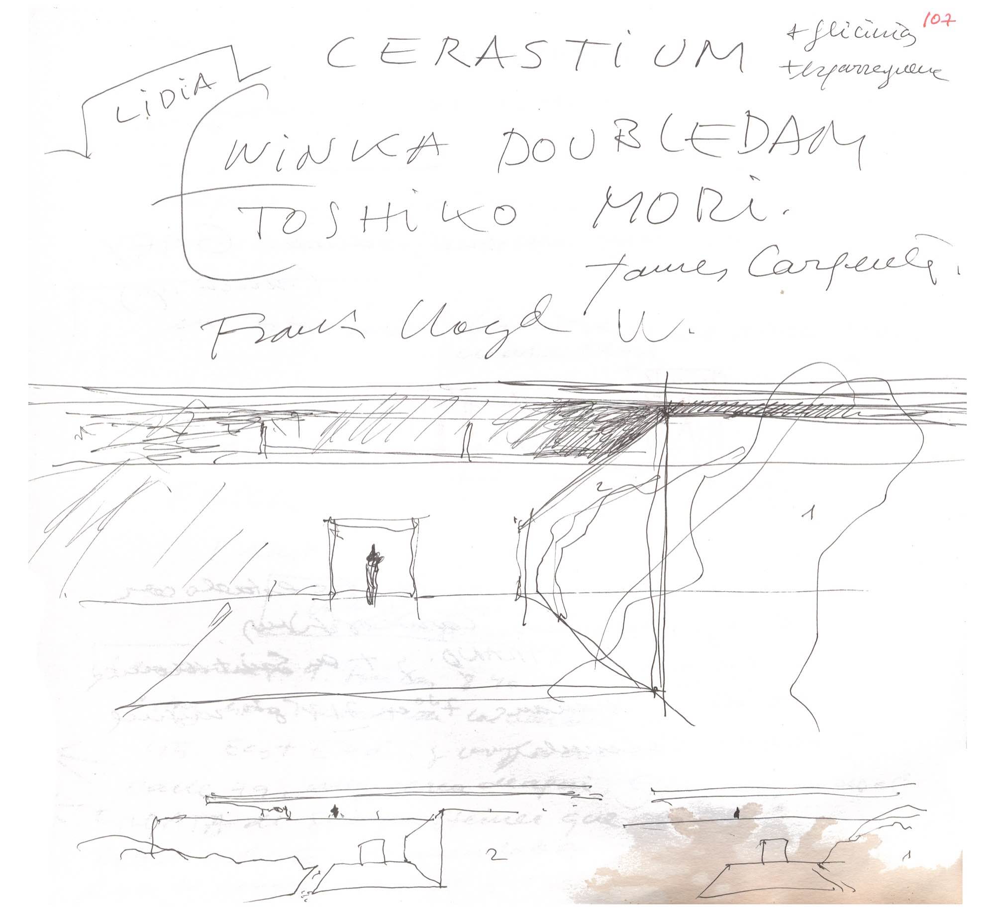 En un lugar de profunda calma donde tras un día de lluvia y niebla, una intensa luz se refleja en la quietud del espejo de las profundas aguas del majestuoso río Hudson. En este impresionante lugar, decidimos establecer un plano, una plataforma, que subrayando el paisaje que aparece frente a nosotros, intentara realzar el paisaje. Construimos una gran caja de 122 pies de largo por 54 pies de ancho por 12 pies de alto. Con recias paredes de hormigón que acentúan su relación con la tierra. La cubierta de esta caja es plana y de piedra, travertino, para establecernos sobre ella.