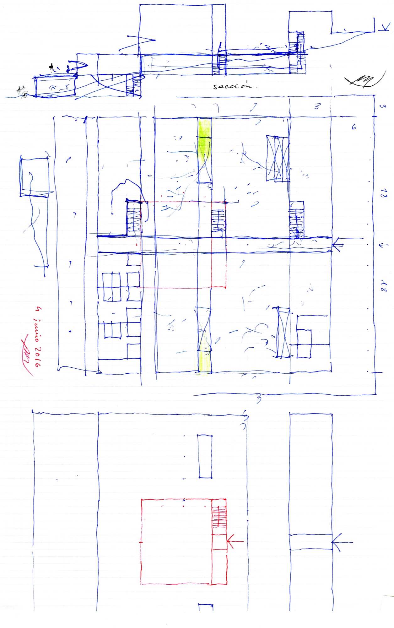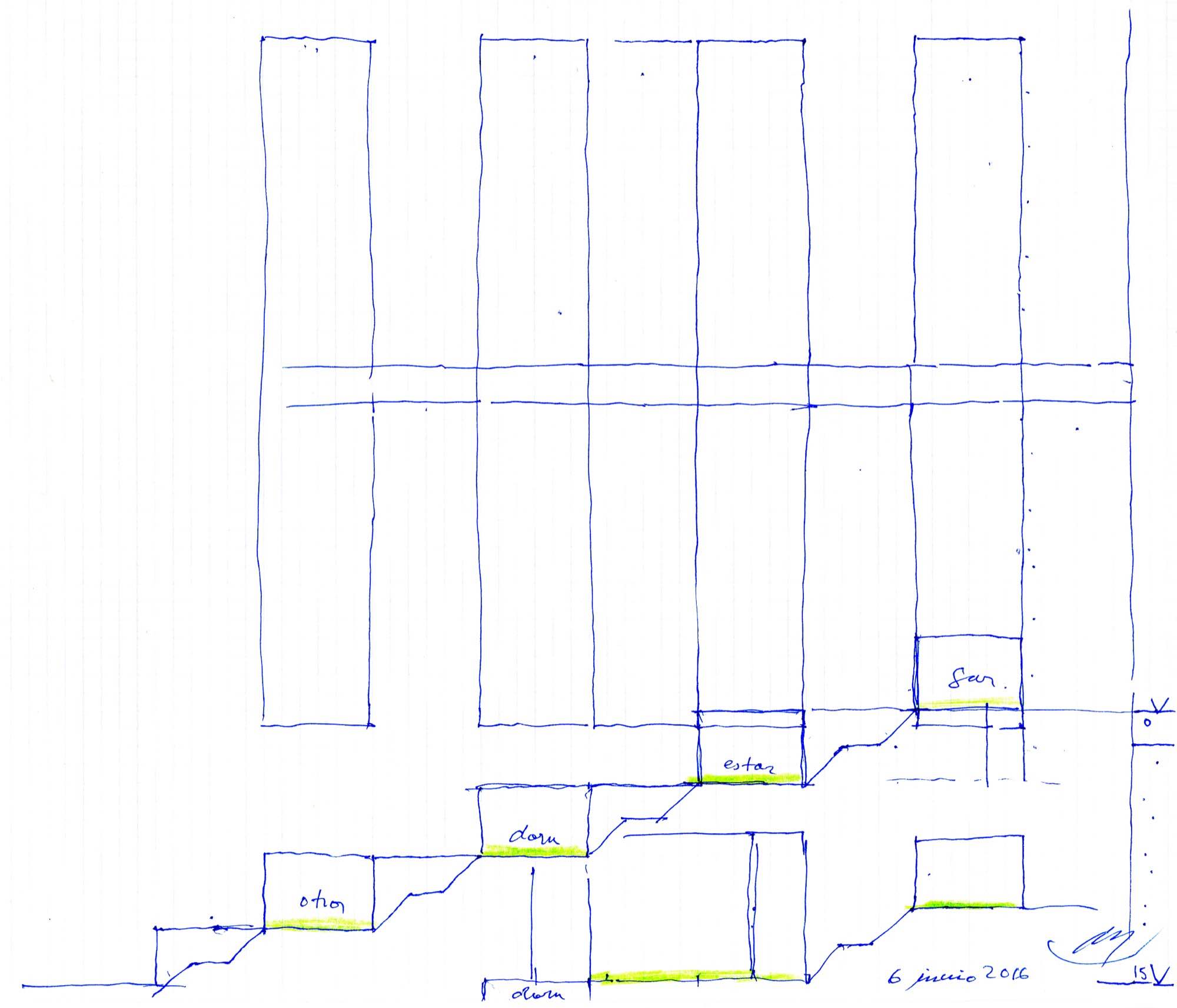 El segundo nivel, es una plataforma que será la mayor, sobre la que se asentará el espacio principal de la casa.