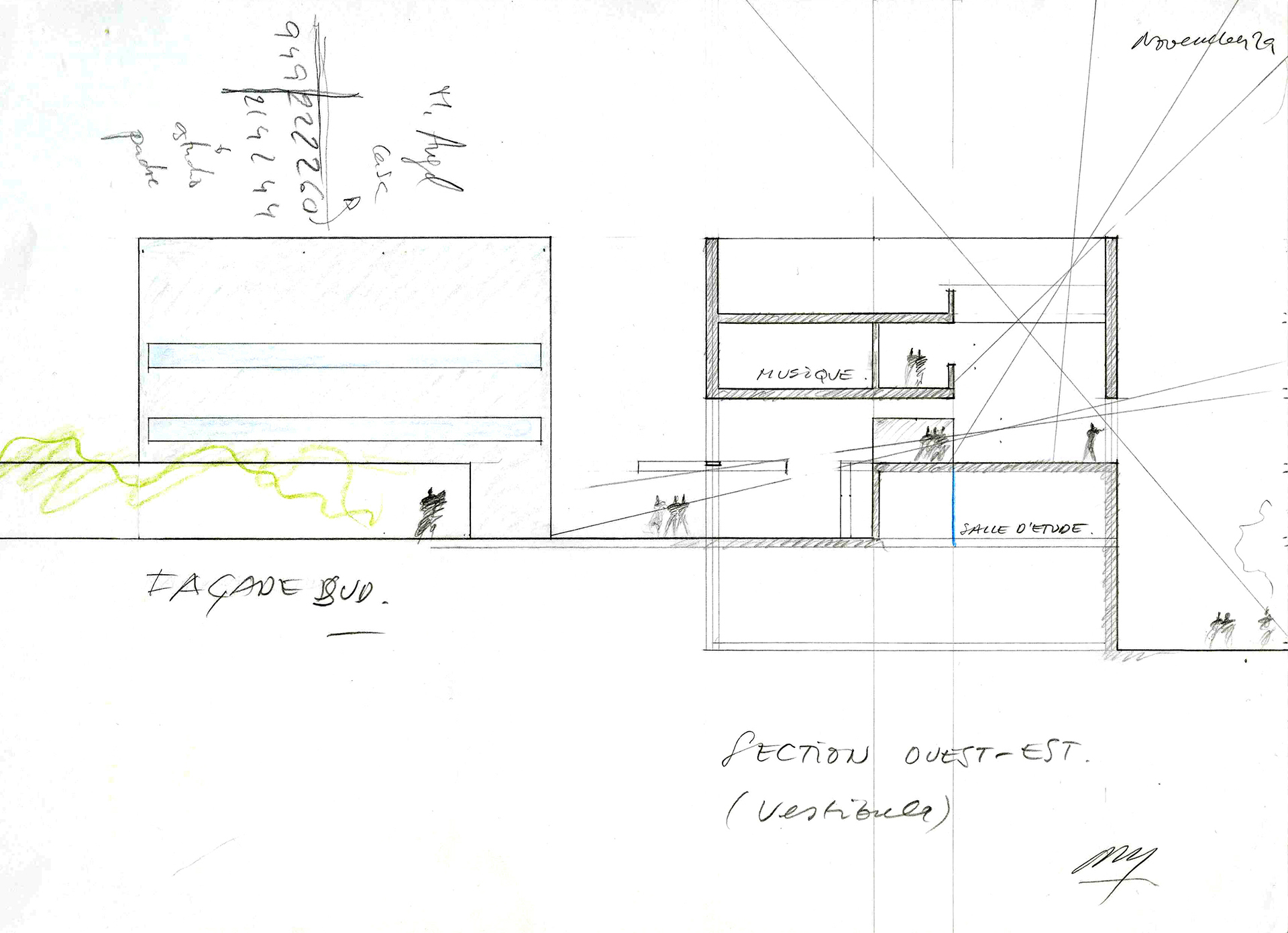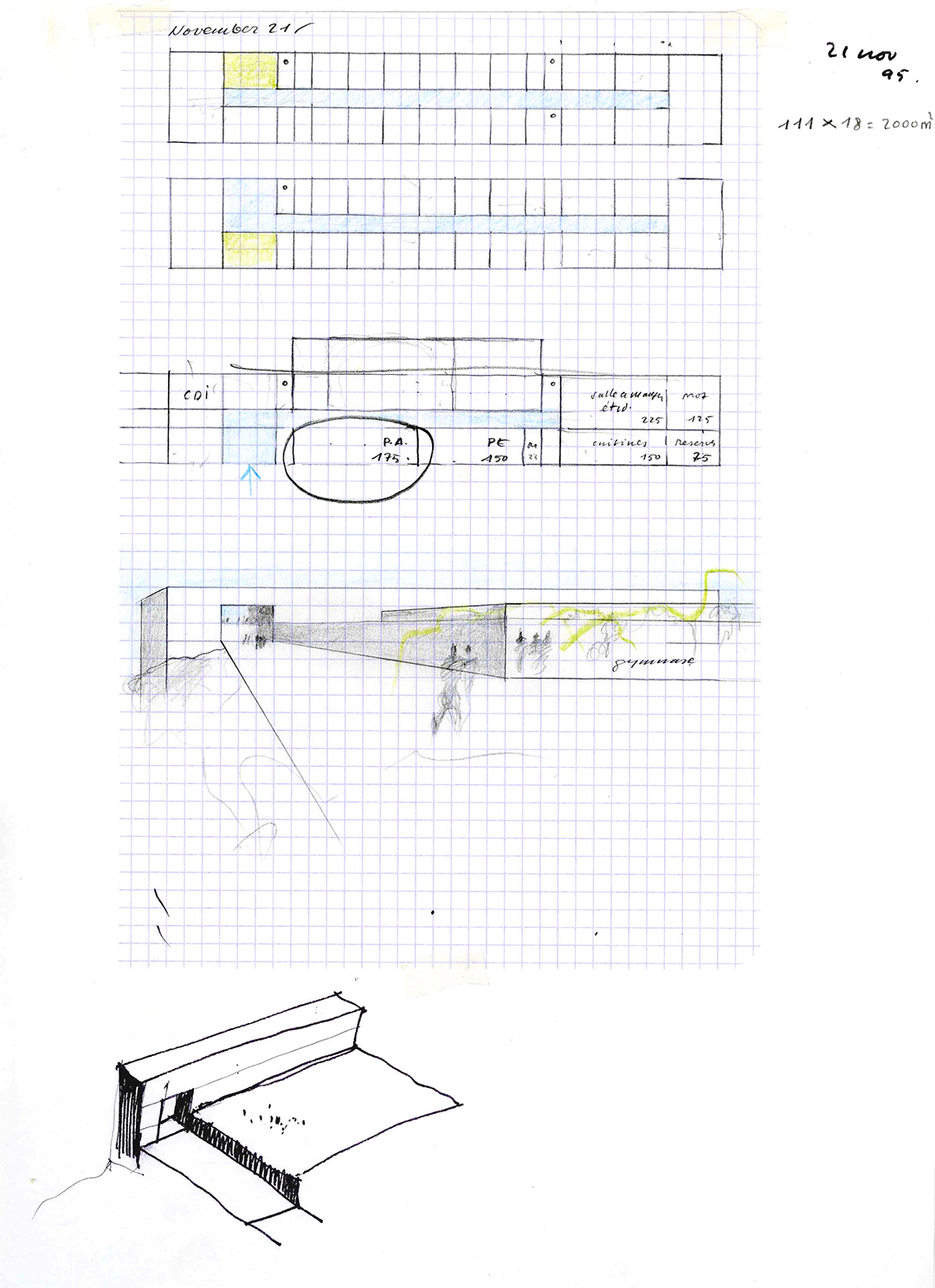 El esquema lineal da lugar a un edificio muy alargado y con proporciones similares a las de un barco, un “bateau îvre” como diría el poeta.