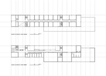 Las dos plantas altas contienen todas las aulas y en planta baja se ubican espacios comunes y despachos de profesores.