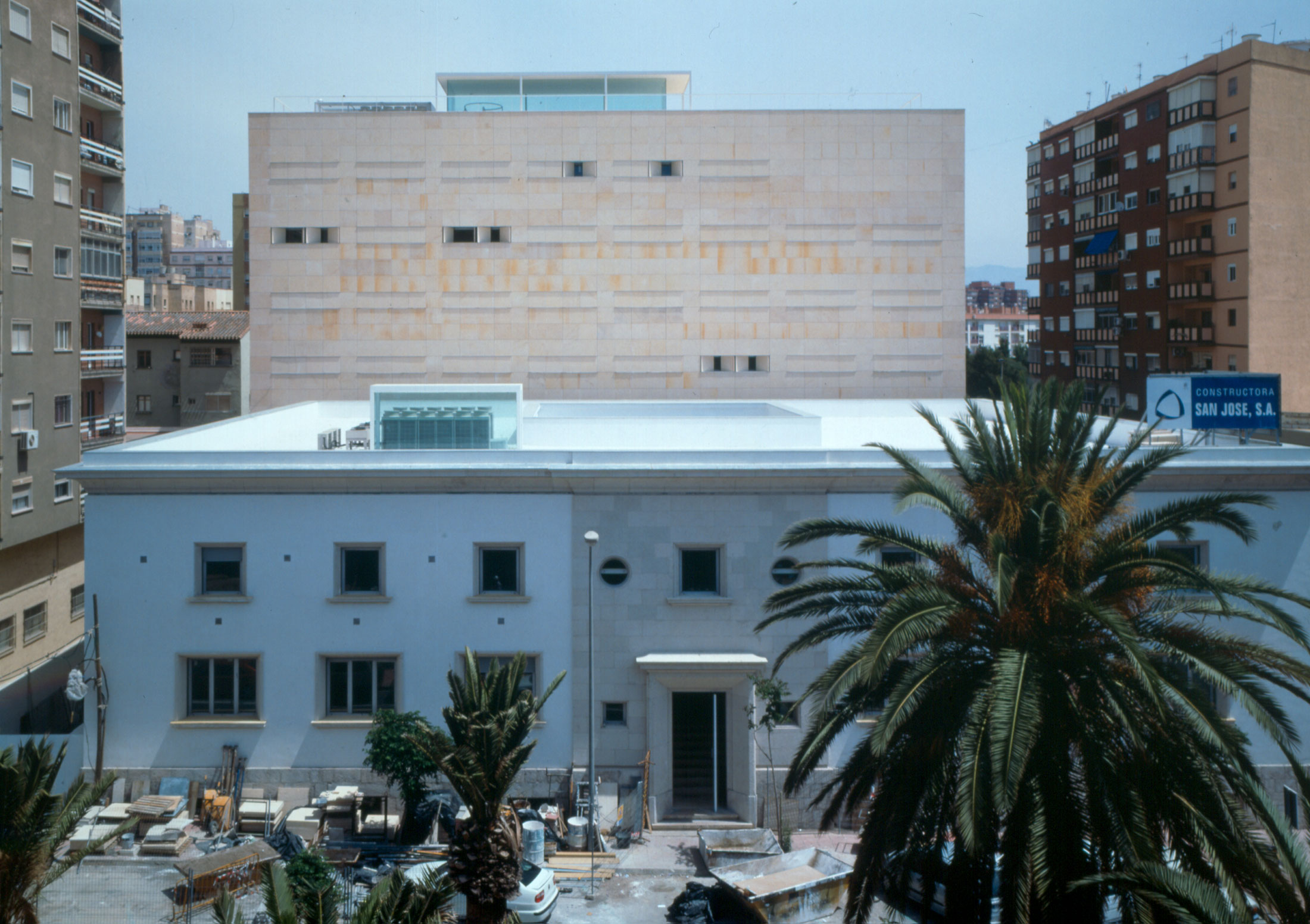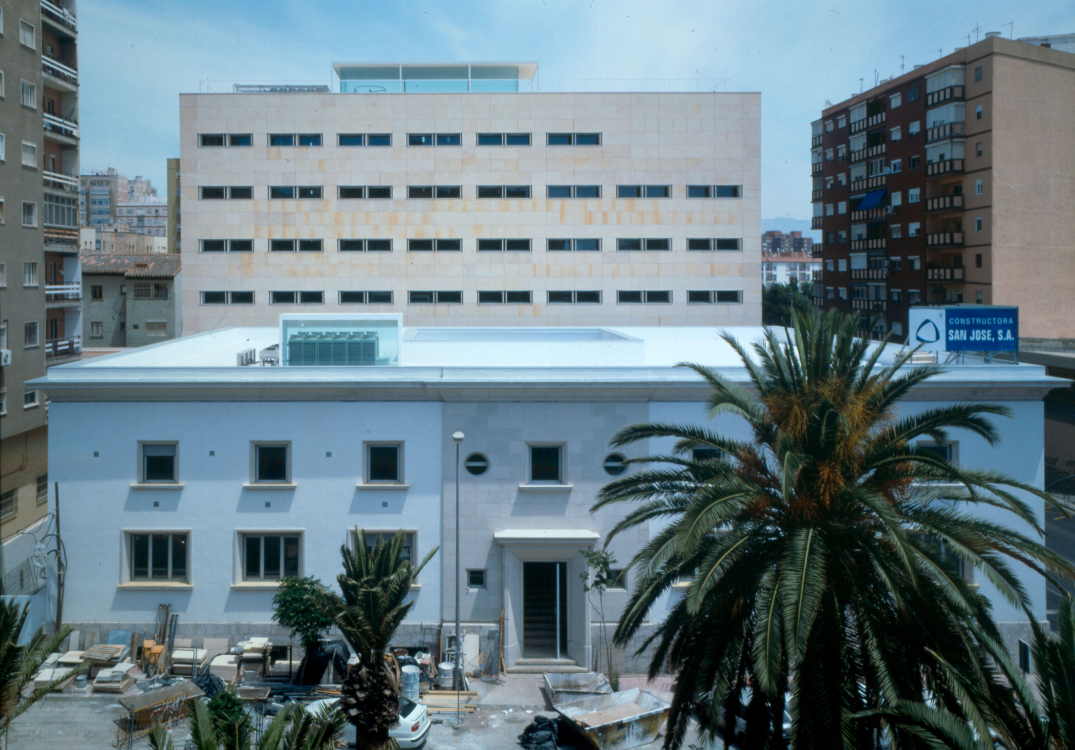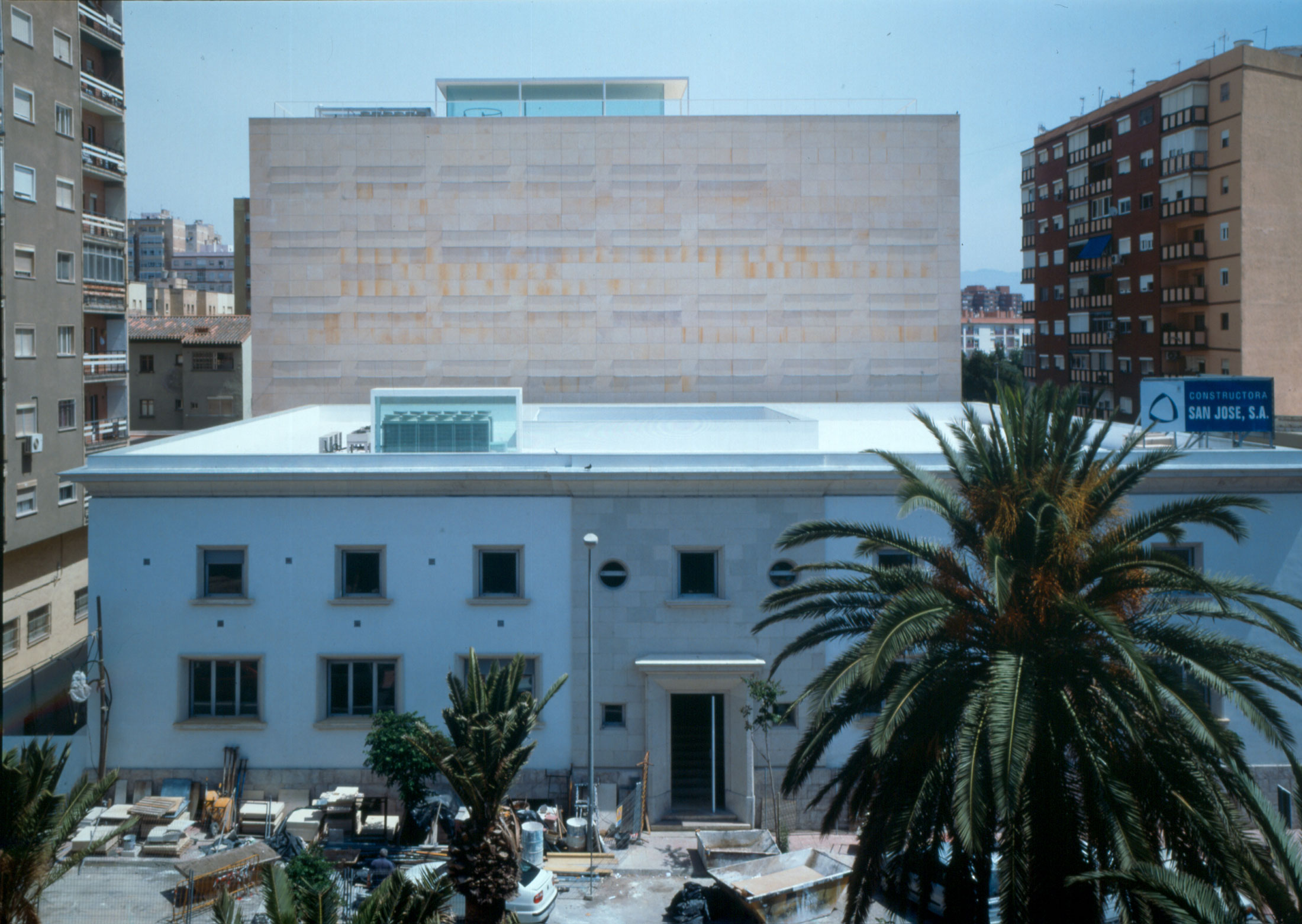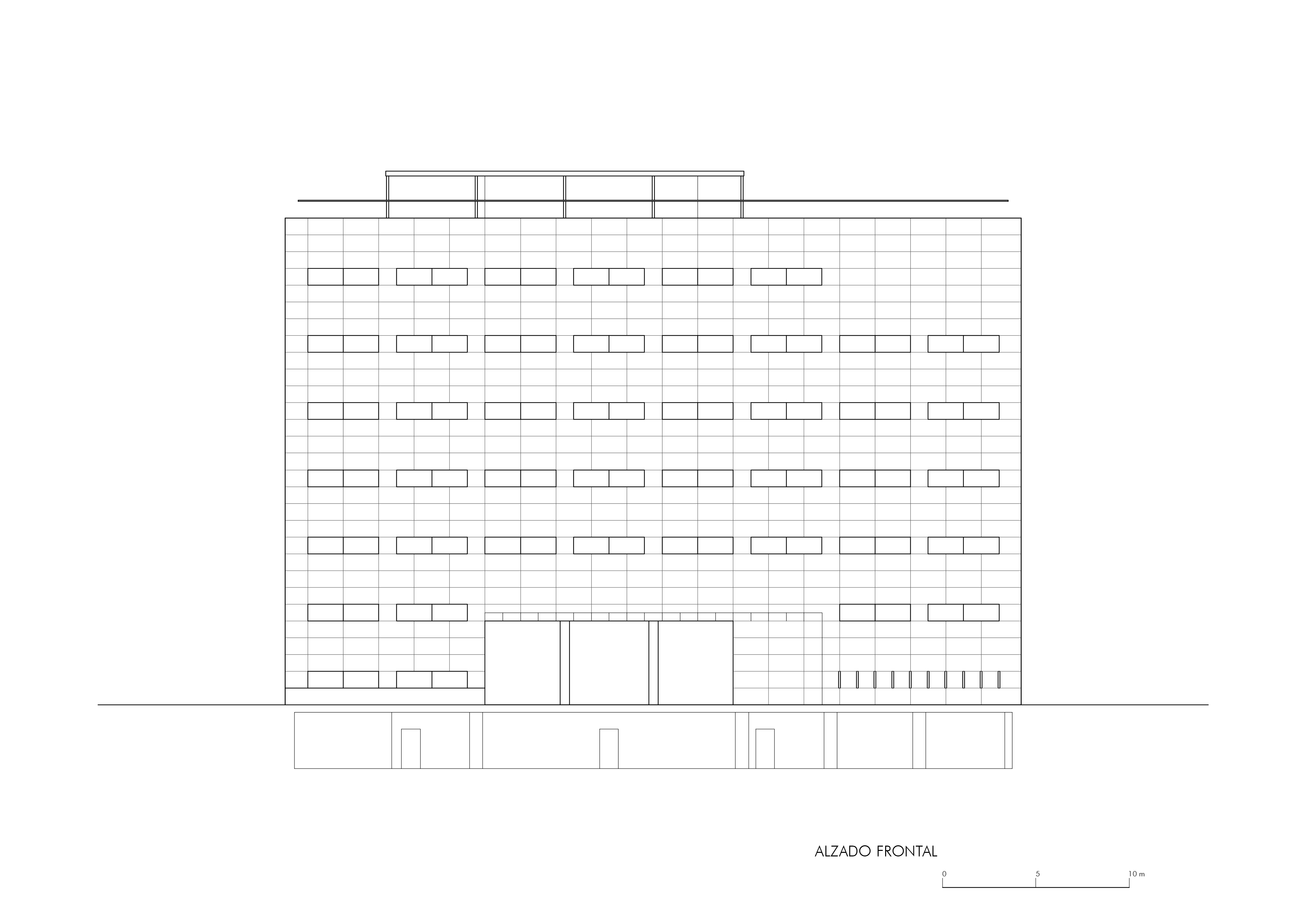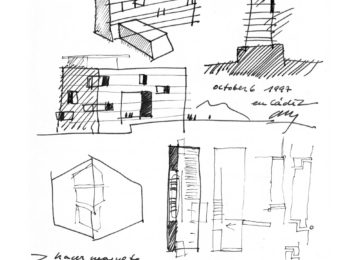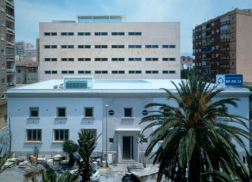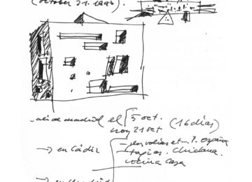 On an elongated site measuring 40 x 8.5 m with a maximum height of 7 floors, the offices were built as a single volume. A straight rectangular parallelepiped was built entirely in stone. The thick walls contain closets and storage. The windows are double. Inside, glazed. Outside, the project’s most unique aspect, are shutters made of stone to regulate the light that enters the rooms. When all of the shutters are closed, the parallelepiped appears as a solid stone box.