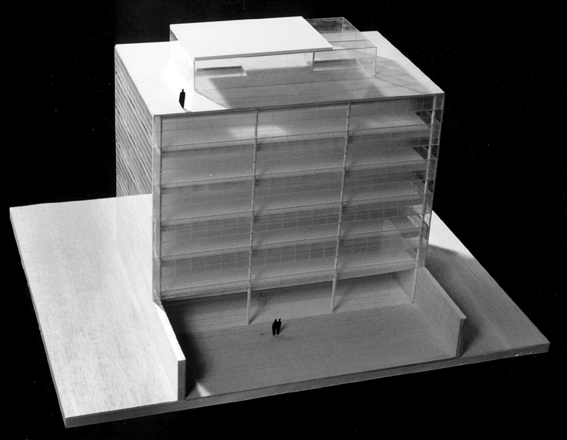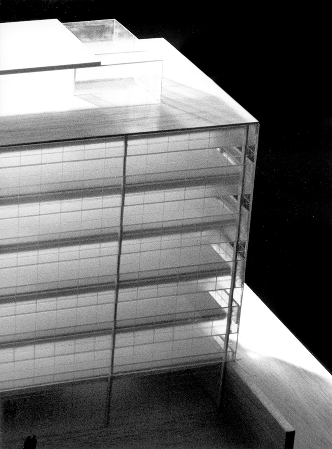 This project was developed within the predetermined massing for a planned series of seven-story towers, measuring 27 x 18 meters in plan. Located in Barcelona, these towers are to face onto Ciudadela Park. A rigorously ordered floorplan with a central core is adopted in order to obtain maximum flexibility.