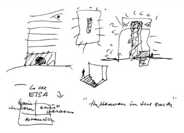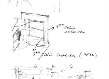 The structure is light, metallic. Up high on the roof-top terrace, with amazing views of the city, a crystalline belvedere is formed upon a continuous stone plane. The glass architecture proposed here, almost built by the clouds themselves, once again is the expression of a sought after essentiality.